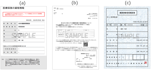 マイナ保険証を利用していない方:健保がお送りした「資格確認書(はがきサイズ)」で確認できます。
