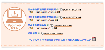 (こちら→ http://www.toshinkyo.or.jp/influenza.html のページ中段辺りに、下図のようにダウンロードリストがあります)