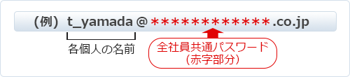 会社の自分のメールアドレスのドメイン(「@」と「.co.jp」の間)を入力してください。
